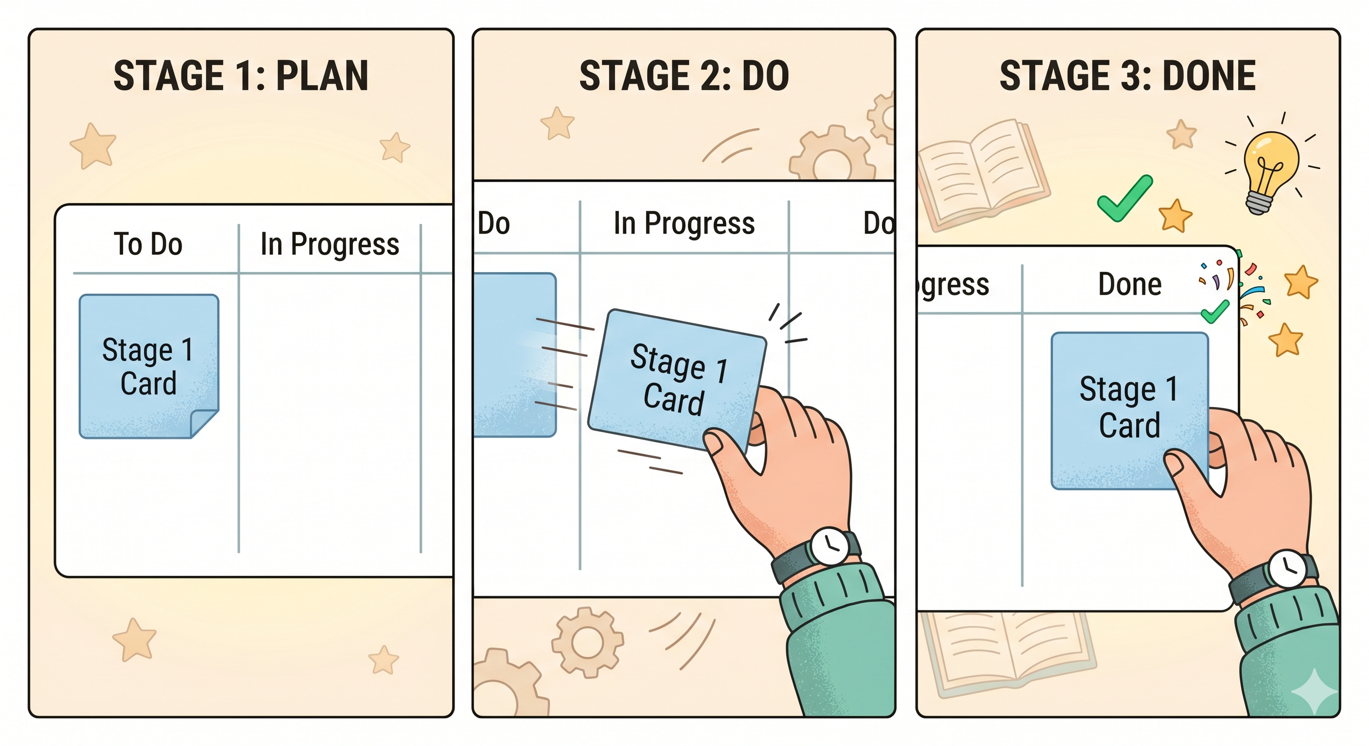 That's your whole system. You just started using Kanban. It didn't take a course or a book — just a board and a few cards.